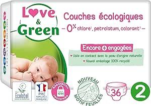 Love & Green - Couches Bébé Saines et Ecologiques - Taille 2 (3-6 kg) - 36 couches - Absorbante, anti-fuites et sans ingrédients indésirables : Amazon.fr: Hygiène et Santé