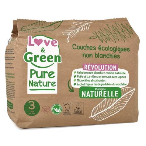 Love & Green - Couches écologiques non blanchies, taille 3. Love & Green lance sa nouvelle gamme de couches Pure Nature ! Des couches écologiques non...