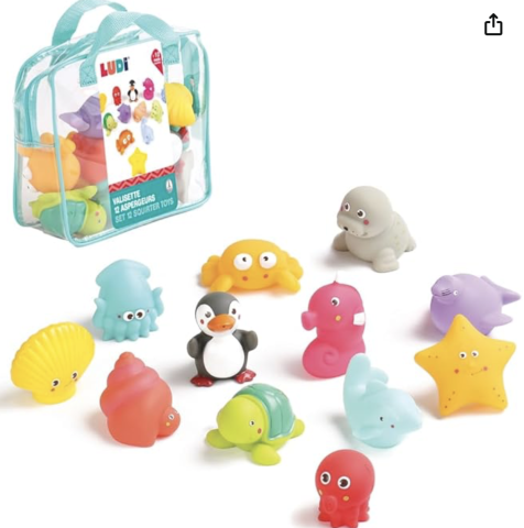 Ludi 2174, 12 animaux marins en plastique pour jouer dans le bain. Dès 6 mois Animaux arroseurs rigolos Sac de rangement inclus, Plastique, 12 Unité (Lot de 1) : Amazon.com.be: Jouets