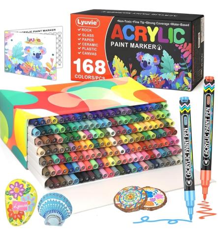Lyuvie 168 Couleur Feutre Acrylique,Marqueur Peinture Acrylique avec Pointe Extra Fine de 0,7 mm,Permanent Stylo Peinture Acrylique pour Textile Verre Galets Métal Tissu Bois Céramique : Amazon.com.be: Loisirs créatifs