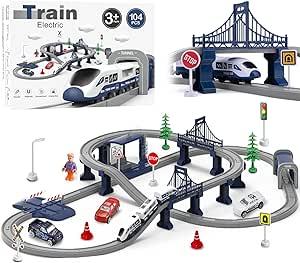 LZDMY Autorennbahn Eisenbahn 104 Stück Rennstrecke Spielzeug ab 3 Jahr, Kinderspielzeug Elektrisch Autobahn Kompatibel mit Brio-Schienen Geschenk für Kinder : Amazon.com.be: Jouets
