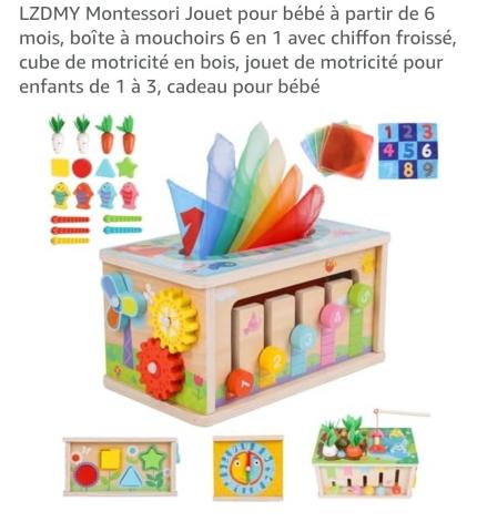 en toute liberté. Il est possible d'ajouter toutes vos envies cadeaux et de recevoir les dons directement sur votre compte. Avec les dons reçus, vous êtes alors libre d'aller acheter vos produits (comme ce 'LZDMY Montessori Baby Toy from 6 Months, 6 in 1 Tissue Box with Crinkle Cloth, Wooden Motor Skills Cube, Motor Skills Toy for 1-3 Kids, Baby Gift : Amazon.com.be: Toys