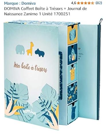 Ce produit est extrait d'une liste de naissance déposée sur Kadolog. Kadolog permet de créer des listes de naissance en toute liberté. Il est possible d'ajouter toutes vos envies cadeaux et de recevoir les dons directement sur votre compte. Avec les dons reçus, vous êtes alors libre d'aller acheter vos produits (comme ce 'Ma boîte à Trésors ') où et quand vous le souhaitez.