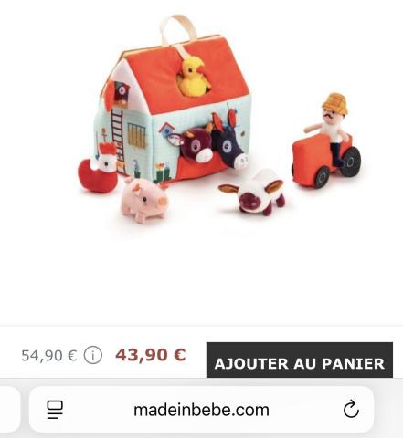 Ce produit est extrait d'une liste de naissance déposée sur Kadolog. Kadolog permet de créer des listes de naissance en toute liberté. Il est possible d'ajouter toutes vos envies cadeaux et de recevoir les dons directement sur votre compte. Avec les dons reçus, vous êtes alors libre d'aller acheter vos produits (comme ce 'Ma première Ferme ') où et quand vous le souhaitez.