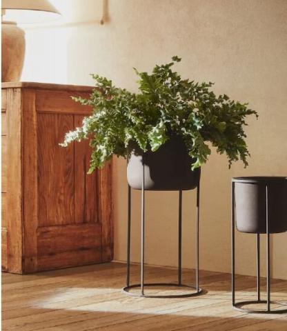 Macetero con soporte metálico efecto quemado.