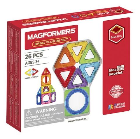 Assemble très facilement de nombreuses créations en 3D avec les 26 éléments magnétiques de ce Basic Plus Set de Magformers. Souris, fusée, poisson, maison ou formes géométriques complexes, à toi de choisir !