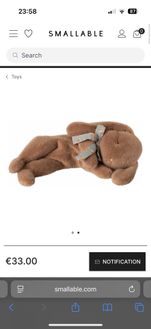 Ce produit est extrait d'une liste de naissance déposée sur Kadolog. Kadolog permet de créer des listes de naissance en toute liberté. Il est possible d'ajouter toutes vos envies cadeaux et de recevoir les dons directement sur votre compte. Avec les dons reçus, vous êtes alors libre d'aller acheter vos produits (comme ce 'Maileg - Sleeping bunny plush - Chocolate | Smallable ') où et quand vous le souhaitez.