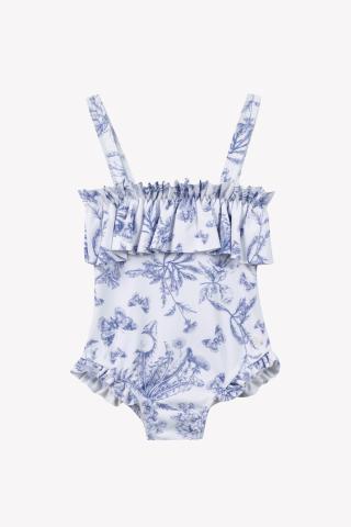 Découvrez notre Maillot de bain - Bleu vif imprimé inspiration Toile de Jouy fille. Emballage cadeau offert ✓ Livraison gratuite en boutique et offerte dès 200€ d'achats.