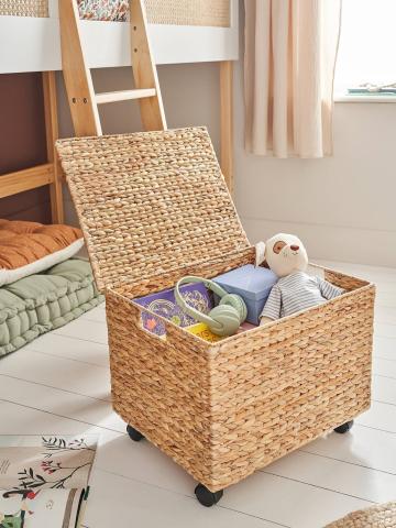 Malle de rangement à roulettes en jacinthe d’eau marron moyen uni - Un aspect nature qui passe partout dans la maison ! Cette malle en jacinthe d'eau offre un joli rangement pour dissimuler les jouets des enfants. Le petit plus