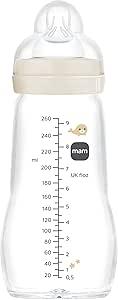 MAM Biberon en verre, 2-4 mois, 260 ml, avec tétine 2 à débit moyen en silicone, facile à nettoyer, Feel Good, neutre, lot de 1 : Amazon.com.be: Bébé et Puériculture