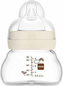 MAM Biberon en verre, nouveau-né, 0 mois, 90 ml, avec tétine 0 à débit extra lent en silicone, facile à nettoyer, Feel Good, neutre, lot de 1 : Amazon.com.be: Bébé et Puériculture