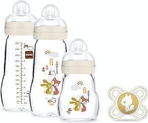 MAM Coffret Biberons Verre (3 biberons verre + 1 sucette) – Biberon MAM en verre résistant à la chaleur – Biberon verre pour nourrisson dès la naissance et sucette naissance en silicone : Amazon.com.be: Cuisine et maison
