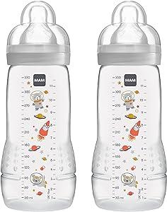 MAM Easy Active Lot de 2 biberons (330 ml) avec tétine MAM Taille 2 en silicone SkinSoft, bouteille de lait avec forme ergonomique, 4 mois et plus, espace : Amazon.fr: Bébé et Puériculture
