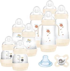 Mam Easy Start anti-koliekbabyflesjesset, 8 flesjes in de formaten 130 ml, 160 ml en 260 ml, 1 Start Nanò fopspeen, 4 afdichtingsschijven, 1 extra zachte drinkstuit en handgrepen, beige kleur - 730 g : Amazon.com.be: Babyproducten