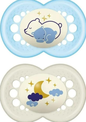 MAM Lot de 2 tétines en latex de caoutchouc naturel, brille dans le noir, à partir de 6 mois, avec tétine symétrique, plate et flexible, avec boîte auto-stérilisatrice, bleu brillant : Amazon.fr: Bébé et Puériculture