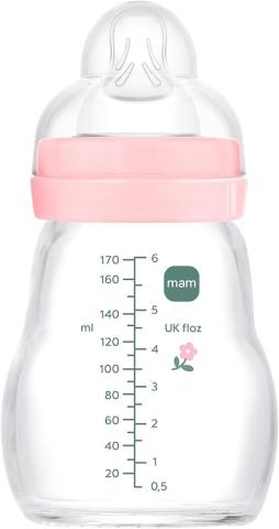 MAM MAM Feel Good Lot de 1 biberon en verre pour nouveau-né 0-2 mois, 170 ml, avec tétine 1 à débit lent en silicone, facile à nettoyer, rose : Amazon.com.be: Bébé et Puériculture