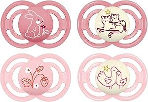 MAM Perfect Day & Night Lot de 4 tétines, phosphorescentes dans l'obscurité, respectueuses des dents de bébé, en matériaux durables et bio-renouvelables, avec boîte à tétine, 6-16 mois, lapin, fleur, : Amazon.com.be: Bébé et Puériculture