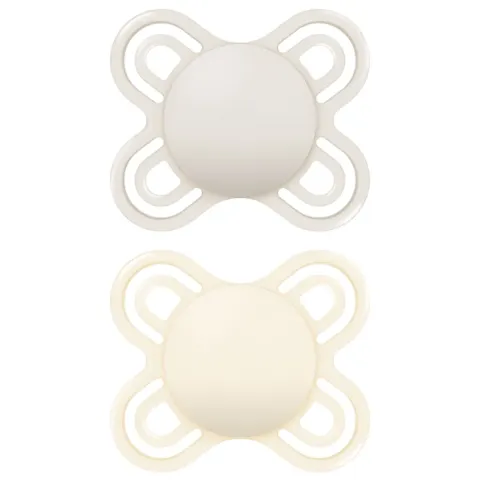 The MAM Perfect pacifier with its unique, extra-thin, flexible teat shape is designed to reduce the risk of misaligned teeth and supports healthy dental development.