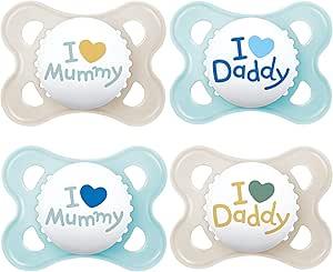 MAM Schnuller Original Silikon "I Love Mummy & Daddy" 0-6 Monate, Junge, 4 Stück** : Amazon.com.be: Bébé et Puériculture