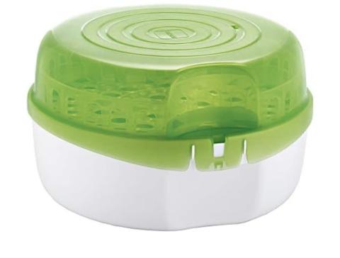 MAM Stérilisateur à vapeur micro-ondes avec 1x biberon MAM anti-colique (160 ml), stérilisateur à micro-ondes pour biberons, tétines et accessoires, stérilisateur de bouteille sûr, blanc/vert