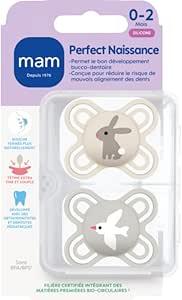 MAM | Sucette Perfect Naissance 0-2 mois (2 pièces) coloris aléatoire – Tétine pour nouveau-né en silicone extra fine et souple – Tétine bébé idéale pour un bon développement bucco-dentaire : Amazon.com.be: Bébé et Puériculture