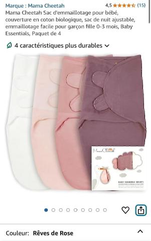 Ce produit est extrait d'une liste de naissance déposée sur Kadolog. Kadolog permet de créer des listes de naissance en toute liberté. Il est possible d'ajouter toutes vos envies cadeaux et de recevoir les dons directement sur votre compte. Avec les dons reçus, vous êtes alors libre d'aller acheter vos produits (comme ce 'Mama Cheetah Sac d'emmaillotage pour bébé, couverture en coton biologique, sac de nuit ajustable, emmaillotage facile pour garçon fille 0-3 mois, Baby Essentials, Paquet de 4 : Amazon.com.be: Bébé et Puériculture ') où et quand vous le souhaitez.