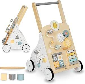 Mamabrum MAM172 Trotteur Bebe 8-en-1, Table d'Activité avec Poussoir en Bois, Centre de Manipulation, Hauteur Réglable 58-66cm - Jouet Éducatif pour Premiers Pas : Amazon.com.be: Jouets