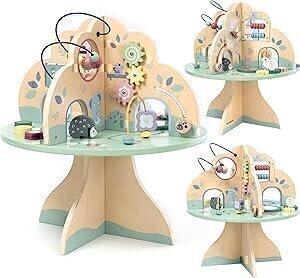 Mamabrum Table d'apprentissage pour enfants 12 m+, arbre multifonctionnel : boucle de moteur, trieur de formes, abaque, jouet éducatif pour soutenir le développement manuel et sensoriel, amusement : Amazon.com.be: Jouets