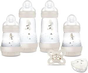 MAM|Mon coffret Naissance(6 produits)Sable 4 biberons Easy Start Anti-Colique+1 sucette Naissance+1 boîte doseuse offerte–Cadeau de naissance idéal avec biberons et tétine ultra douce-dessin aléatoire : Amazon.fr: Bébé et Puériculture
