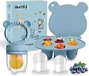 MumEZ Mangeoire à fruits pour bébé – Ensemble de mangeoires pratiques pour bébé, voyage auto-alimentation facile avec tétine pour bébé, plateaux de congélation pour bébé inclus (bleu) : Amazon.com.be: Bébé et Puériculture