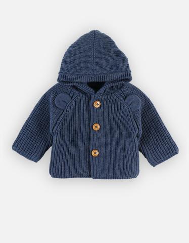 Le mantelet bleu marine en tricot BIO de la collection Mix & Match est l’indispensable de la garde-robe. Doté d’une capuche, il garde bébé bien au chaud.