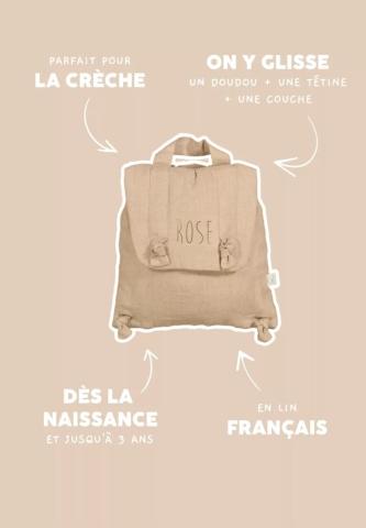 Découvrez Marceau le sac à dos pour enfant. Personnalisable avec son prénom et en lin tout doux, c’est le cadeau de naissance parfait !