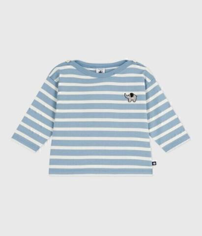 Marinière en jersey, une matière souple et confortable avec une bonne tenue. Encolure ronde boutonnée pour faciliter l'enfilage. 100%Coton