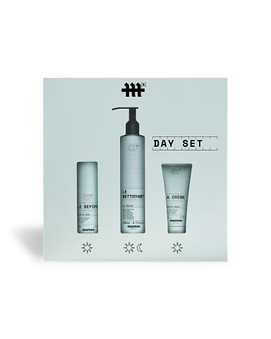 Coffret routine de jour contenant : 1x Le Nettoyant 200ml, 1x Le Before 30ml, 1x La Crème 50ml.