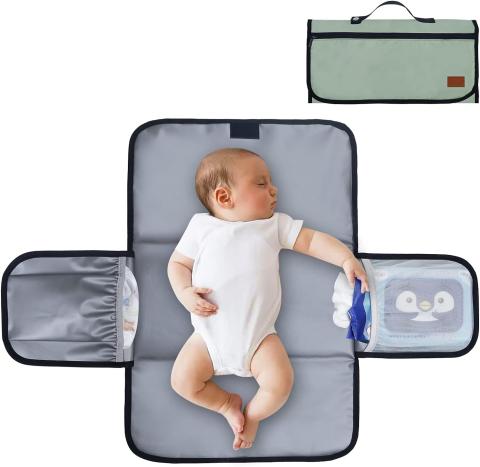 Gloppie Matelas à Langer en Tissu Imperméable et Matelassé, Sac à Langer de Voyage Pliable Tapis avec Pochettes de Rangement, Couche Culotte Changement Kit pour Bébé, Léger et Nomade, Noir