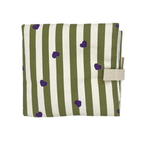 Matelas à langer nomade Adam Stripe & Love de la marque Milinane. Doté d'une poche zippée pour les couches et les lingettes.