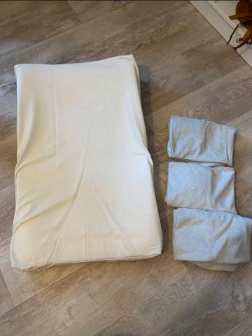Matelas à langer incliné avec ses trois housses. Acheté sur Vinted.