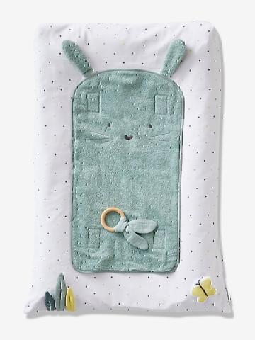 Un matelas à langer bien moelleux et rempli de tendresse pour le change de votre bébé. Son matelas en éponge en forme de lapin est amovible pour un lavage facilité !