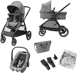 Maxi-Cosi Zelia S Trio Poussette 3 en 1, 0 à 4 Ans, Jusqu'à 22 kg, Poussette Bébé Pliable, Compacte et Inclinable, avec Siège Auto Bébé CabrioFix S i-Size, Accessoires, Sac à Langer, Gris : Amazon.fr: Bébé et Puériculture