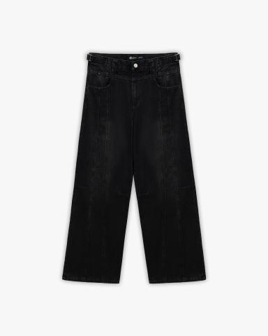 STRAIGHT BAGGY FIT ENGRAVED V-LOGO BUTTON WASHING AT FRONT AND BACK ADJUSTABLE WAIST FUNCTION EMBOSSED V-LOGO LEATHER PATCH AT BACK FIT INFORMATION & SIZE GUIDE MODEL'S HEIGHT IS 183CM AND WEARS SIZE W34L34.