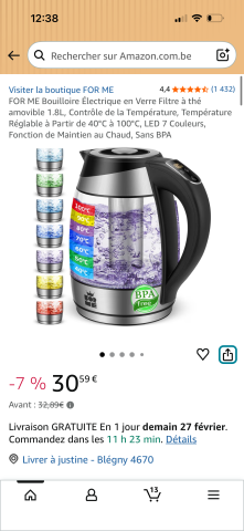 en toute liberté. Il est possible d'ajouter toutes vos envies cadeaux et de recevoir les dons directement sur votre compte. Avec les dons reçus, vous êtes alors libre d'aller acheter vos produits (comme ce 'FOR ME 1.8L Removable Tea Filter Glass Electric Kettle, Temperature Control, Adjustable Temperature From 40°C to 100°C, 7 Colours LED, Keep Warm Function, BPA Free : Amazon.com.be: Home & Kitchen