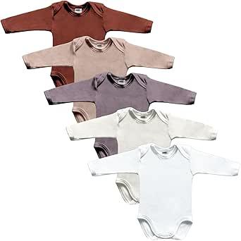 MEA BABY Lot de 5 bodies unisexes en 100% coton pour bébé, imprimé fille/garçon, taille 3-6 mois