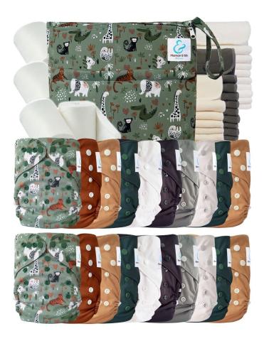 Pack complet pour se lancer dans les couches lavables avec 20 couches TE2 , voiles, inserts bambou et microfibre et sac imperméable. Découvrez nos couches lavables évolutives Te2 à double gousset et faites des économies.