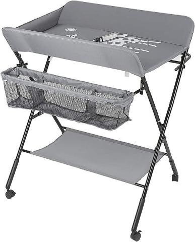 meihe Table à Langer Pliable avec Sac de Rangement et Couche Inférieure, Organiseur de Couche en Toile, Soin pour Nouveaux-Nés, (80 x 66 x 98cm gris)
