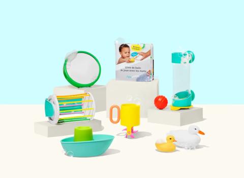 Des jouets de bain qui flottent, s’empilent et récupèrent l'eau, séchage rapide pour éviter la moisissure, faciles à nettoyer et certains passent au lave-vaisselle pour un moment de bain agréable avec votre enfant.