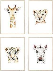 MeinBaby123® Images pour chambre d'enfant - Lot de 4 posters DIN A4 - Tableaux muraux - Animaux de safari - Giraf, zèbre, lion - Images décoratives pour chambre d'enfant - Décoration de chambre de : Amazon.com.be: Bébé et Puériculture
