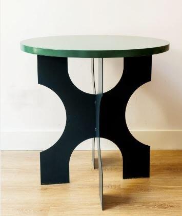Estructura forja en color azul petróleo y tapa de madera en color verde