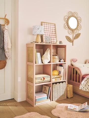 Un meuble à cases idéal pour ranger ses trésors et décorer sa chambre ! On craque pour les finitions cannage et ses jolies couleurs pour une chambre tendance et romantique !