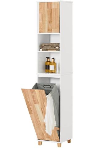 SoBuy Meuble Colonne de Salle De Bain, Armoire Haute Étroite, Placard de Rangement avec 2 Niches, 1 Porte et 1 Panier à Linge, avec Bac, L31 X P32 X H170 Cm, Blanc
