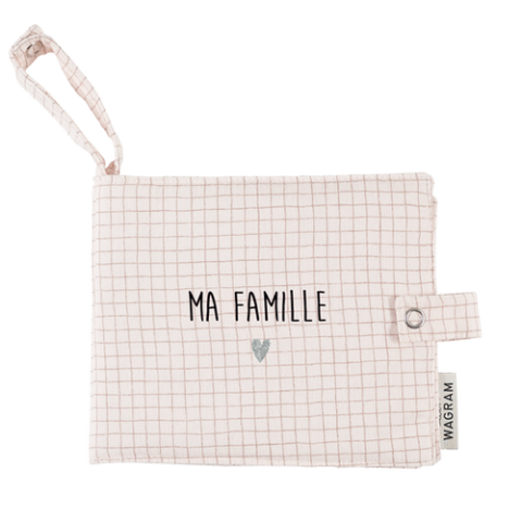 Mini album photo souple pour bébé personnalisé, contenant 6 housses photos à remplir avec les visages des amis et de la famille.Extérieur et intérieur en gaze de cotonFormat fermé : 16x18cm format des photos 10x15cm maximum